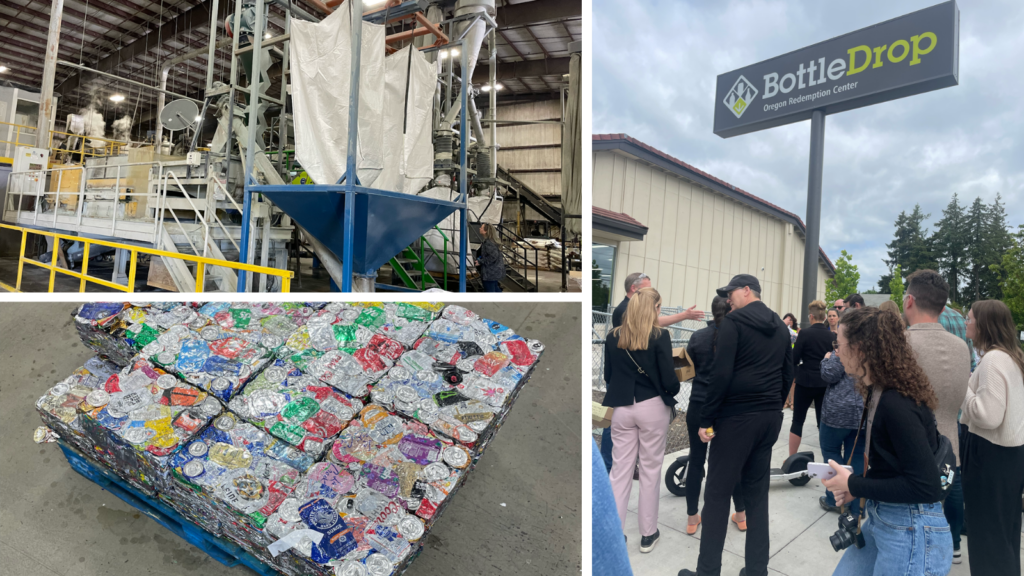 The next stop on the tour was the OBRC headquarters in Clackamas, the center of Oregon’s deposit return system. Oregon’s bottle bill was originally passed in 1971, making it the first in the nation. The OBRC was established in 2009 as the industry steward of Oregon’s beverage container redemption program, providing recovery, reuse, and recycling services to partner distributors, retailers, and to the public. The OBRC continues to innovate with its Green Bag and Blue Bag programs as well as a beer bottle reuse and refill program.