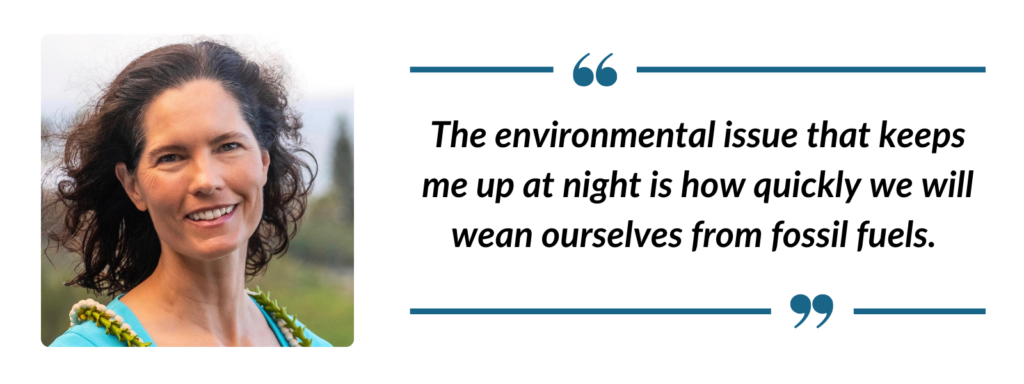 The environmental issue that keeps me up at night is how quickly we will wean ourselves from fossil fuels. My first year, I helped pass a House and Senate Resolution declaring a Climate Emergency. I also have tried to push forward our local transition to renewable energy through Bill introductions and my votes.