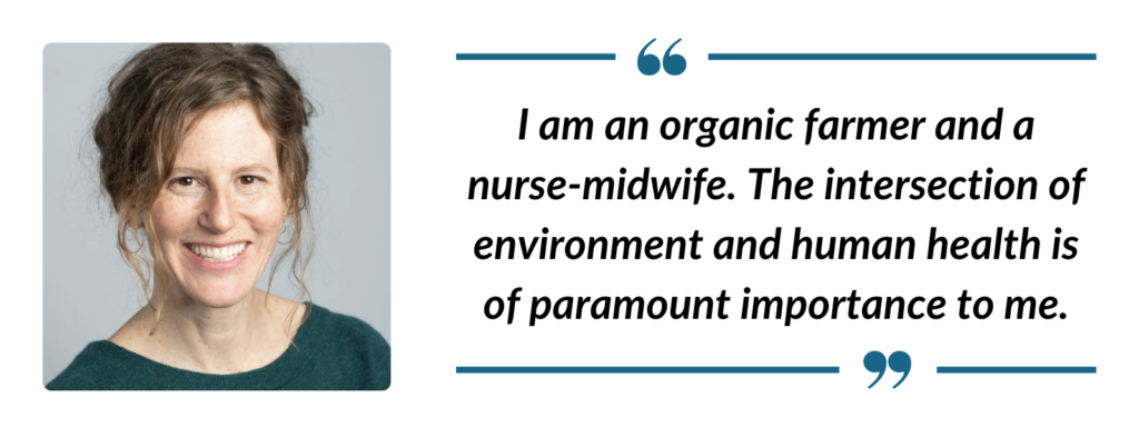 I am an organic farmer and a nurse-midwife. The intersection of environment and human health is of paramount importance to me.