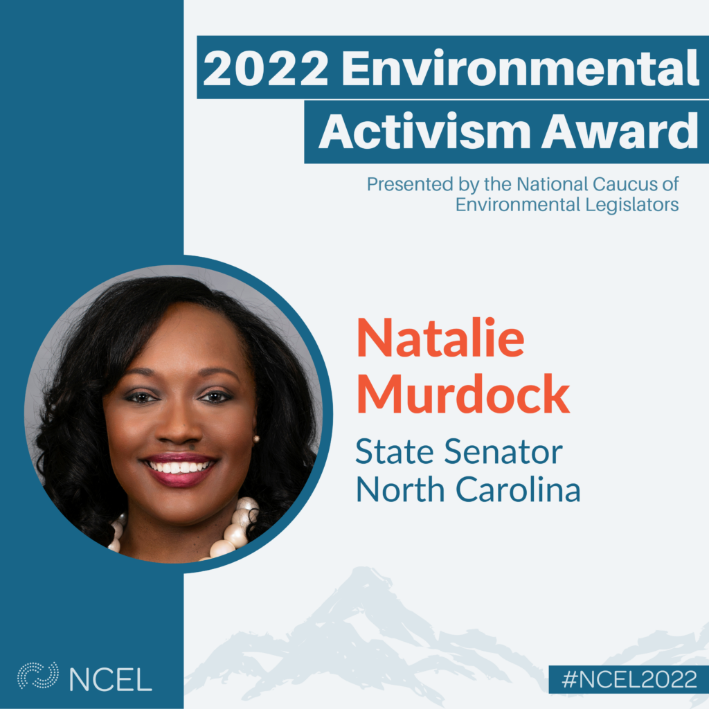 North Carolina State Senator Natalie Murdock received the 2022 Environmental Activism Award. Named in honor of Robert “Renny” Cushing, a former New Hampshire Representative, the award goes to a member of the Caucus for their outstanding activism on environmental issues.