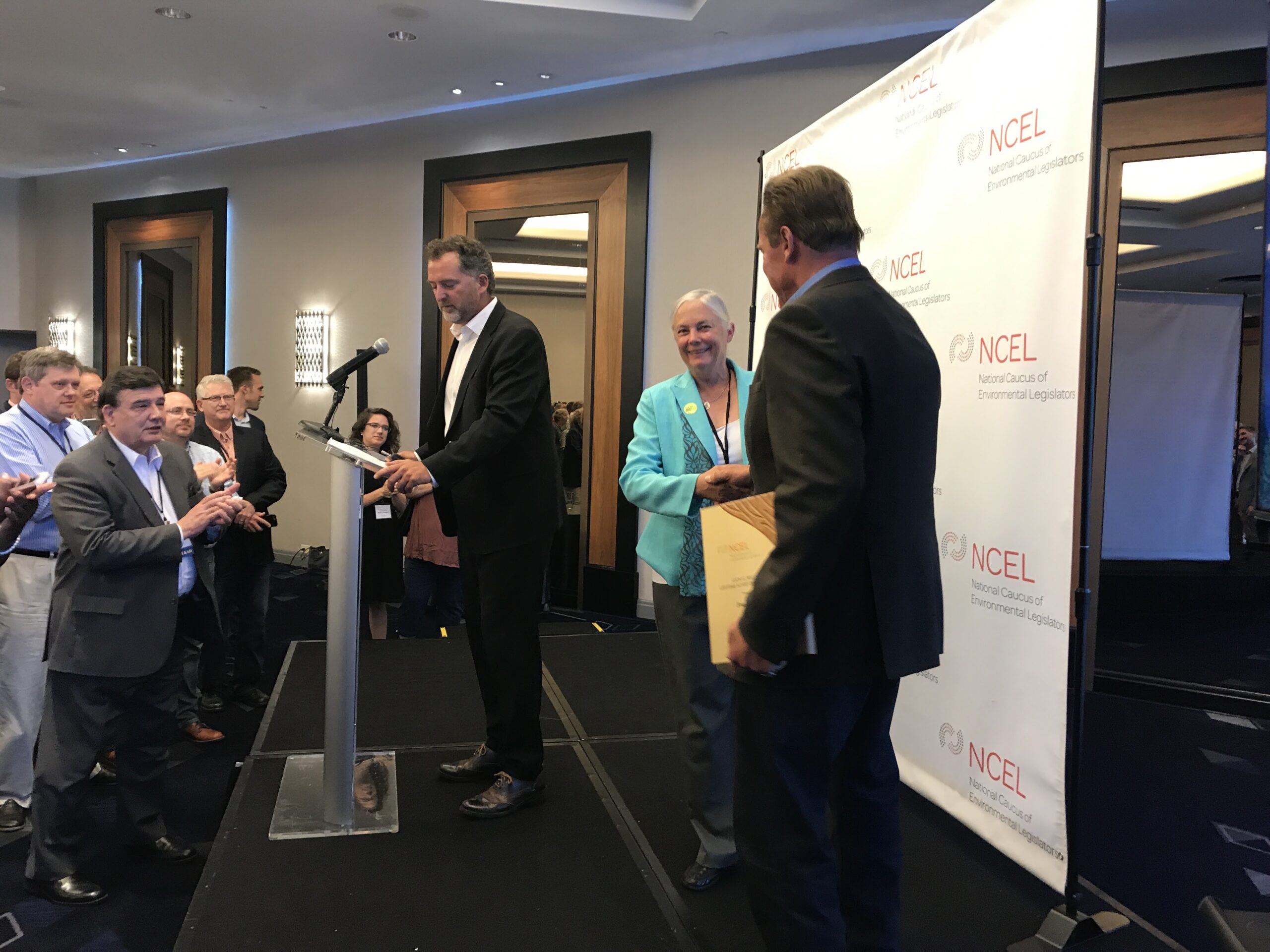 On August 4th, 2017, the National Caucus of Environmental Legislators (NCEL) recognized two state lawmakers for outstanding accomplishments on environmental issues. NCEL staff presented Nevada Assemblymember Chris Brooks with its “Rising Environmental Leader” award, and former California Senator Fran Pavley received the “Leon G. Billings Lifetime Achievement Award.” The awards were announced at NCEL’s fourth annual National Issues Forum, which took place August 3rd-5th in Boston, attended by 128 legislators from 36 states.