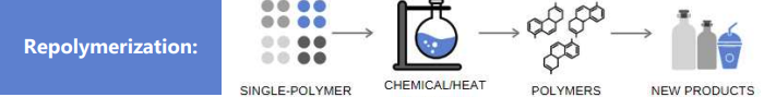 As defined by the European Union, chemical recycling is when plastics are converted into liquids or gas through pyrolysis, gasification, or other methods of heating, and then are recycled into new plastics. This is referred to as “plastic-to-plastic repolymerization.”