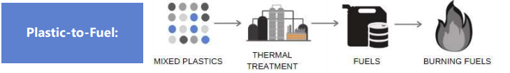Currently, businesses and lawmakers in the U.S. have been using a much broader definition of what constitutes chemical recycling to include both repolymerization and plastics-to-fuels. Plastics-to-fuel, which is also referred to as “waste-to-energy,” is the act of heating or incinerating plastics – oil and gas based products – to break them down to be used as fuel. While plastic-to-plastic repolymerization could be viewed as a form of recycling, burning plastic for fuel does not recycle plastic.
